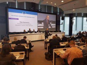 Štefan Simončič, predsednik organizacije in vodja projekta Družbeno-odgovorono zaposlovanje | Fair Employment, predstavlja projekt Fair Emplyoment na The European Solidarity Corps forumu deležnikov. Namen foruma je poudariti, kako uspešno združiti prostovoljno delo in iskanje prve zaposlitve na nepredvidljivem trgu delovne sile.